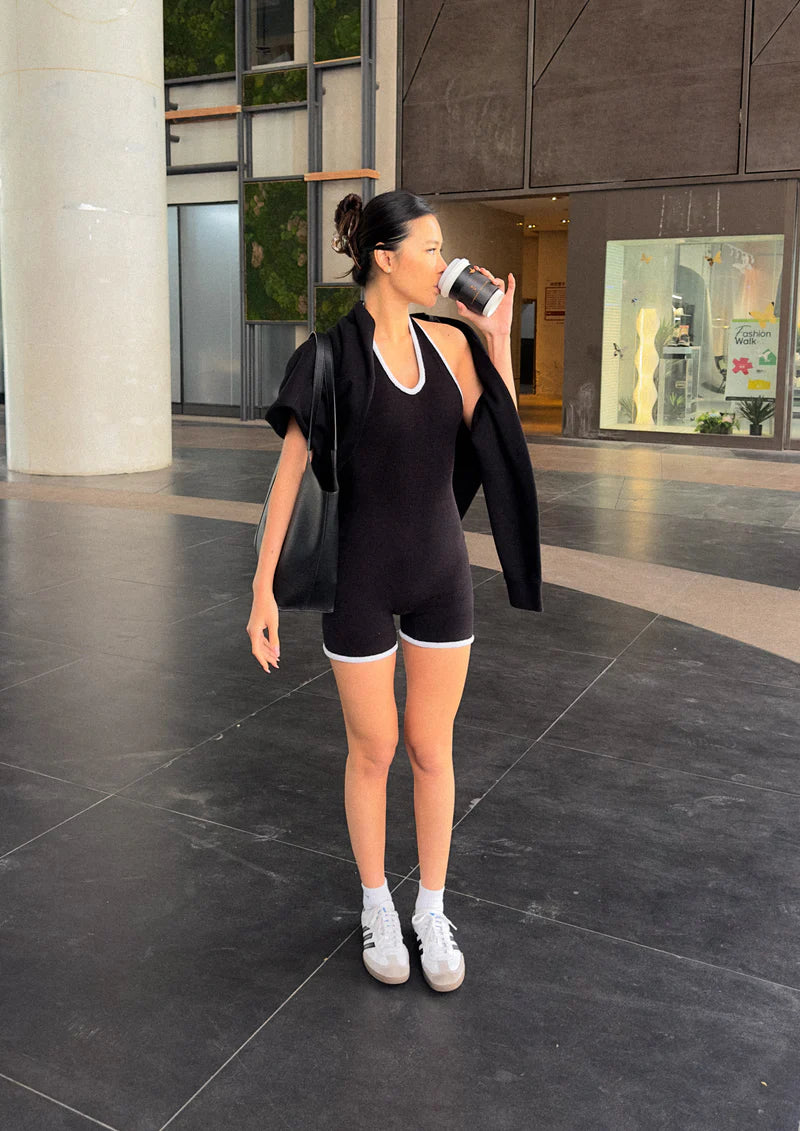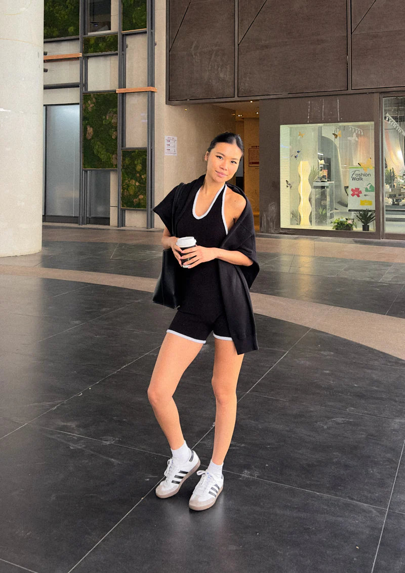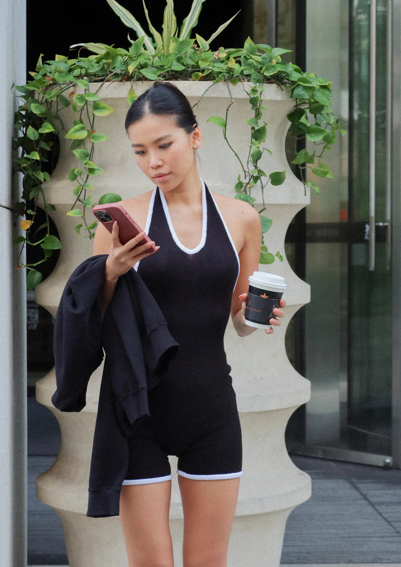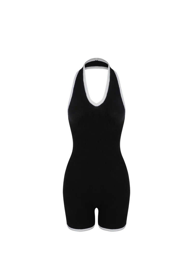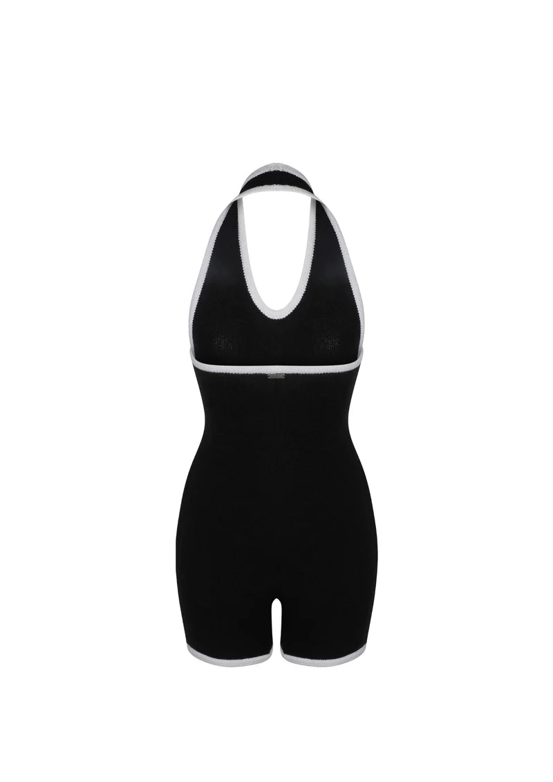 Camellia Halter Knit Suit - Black