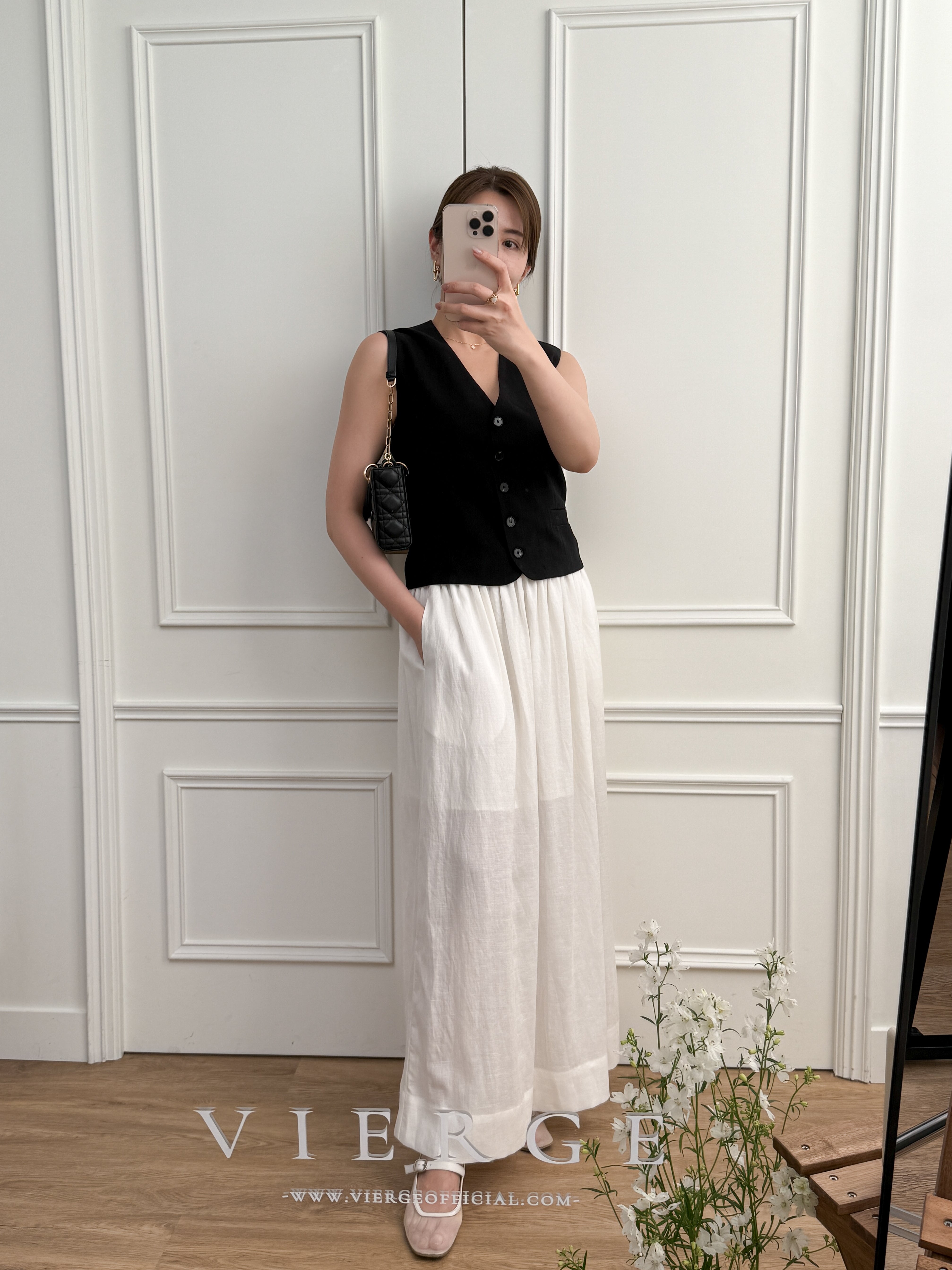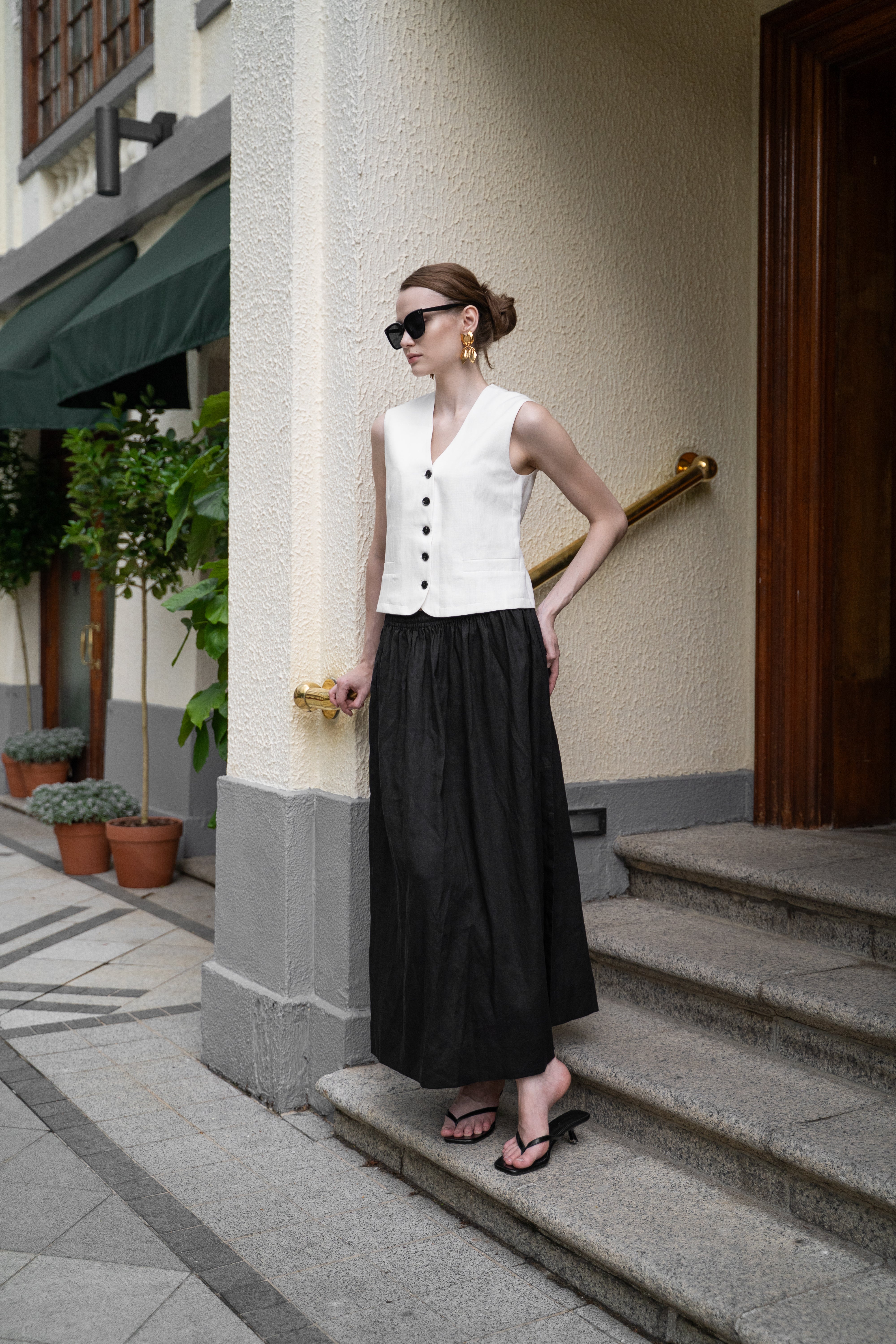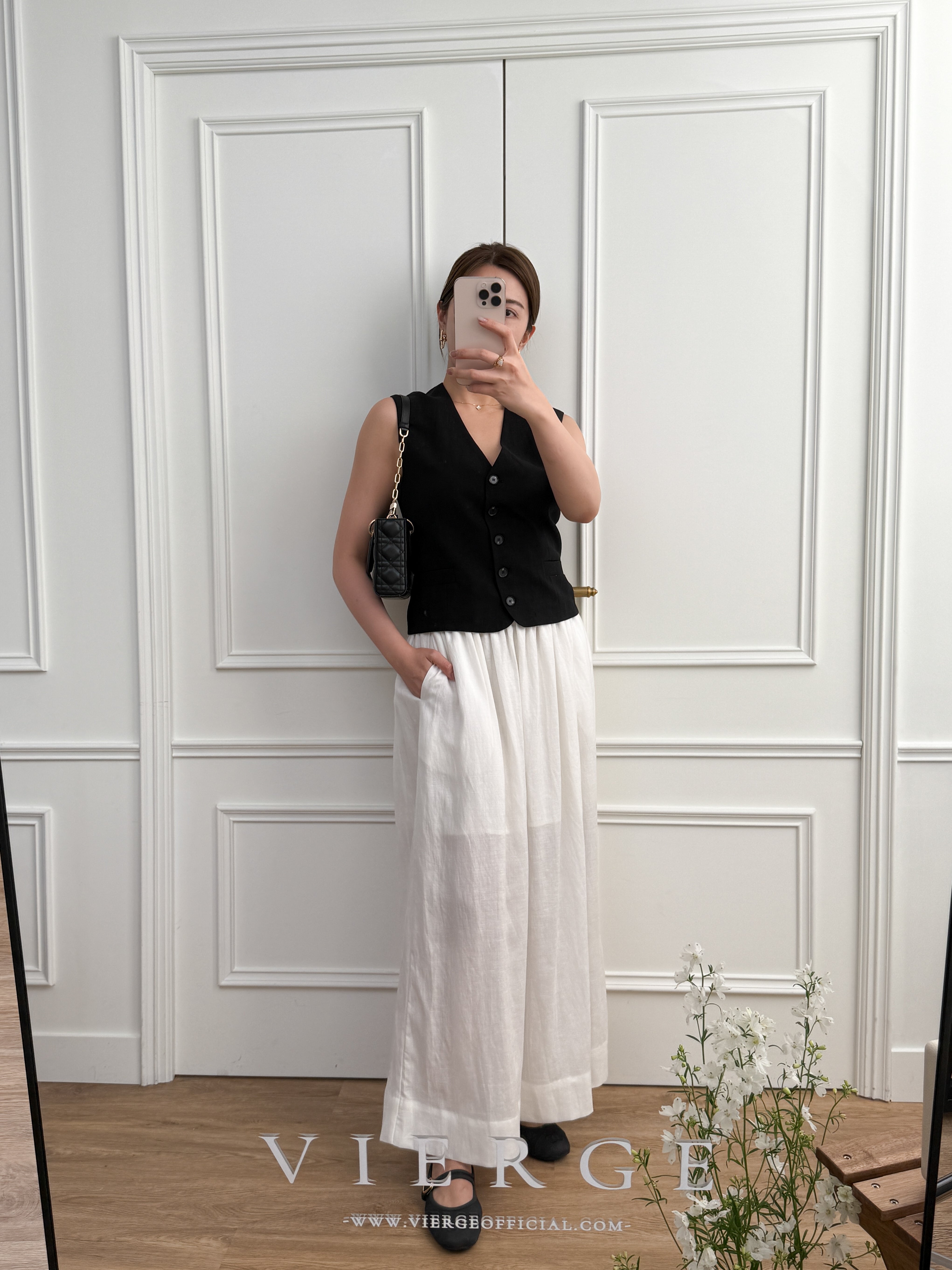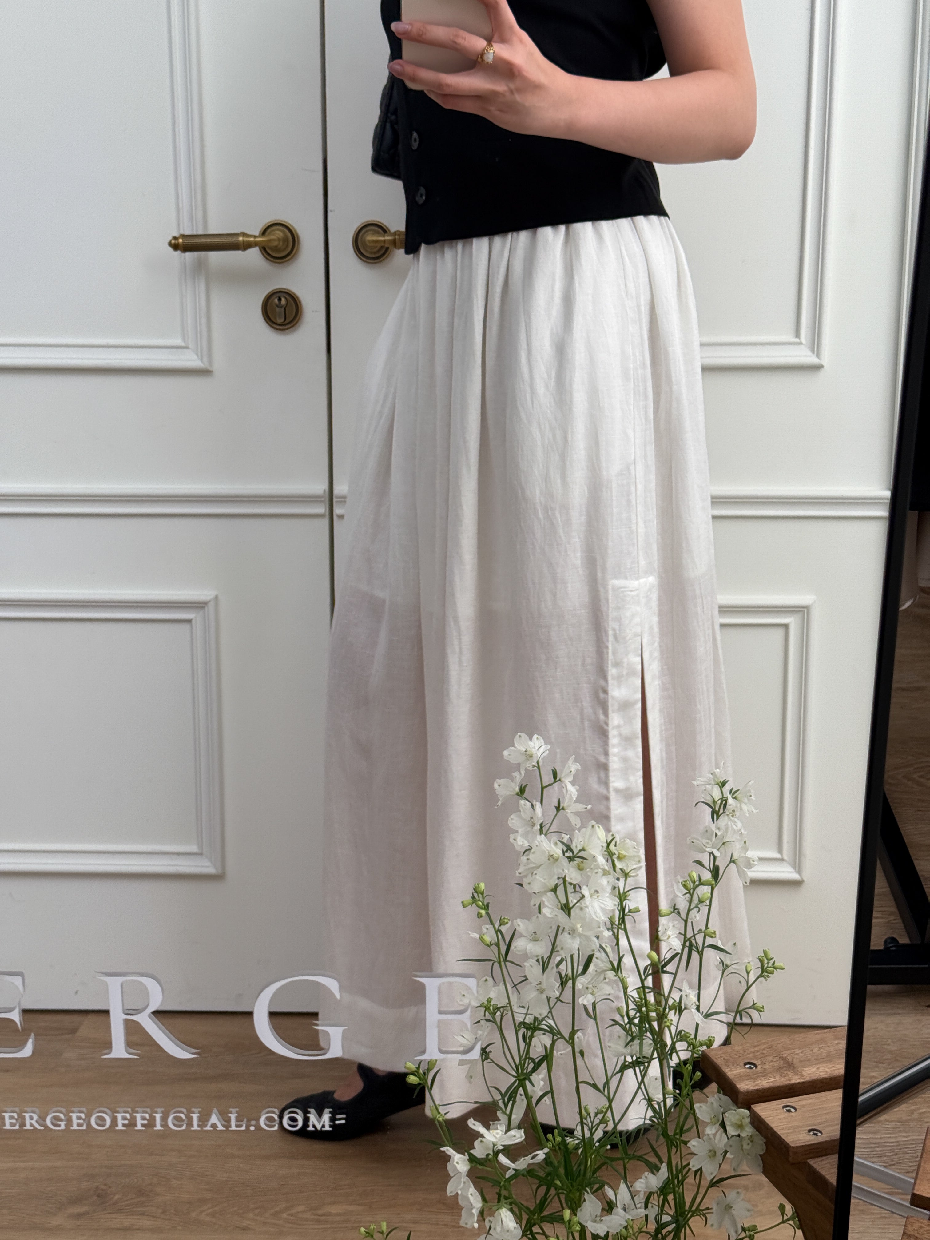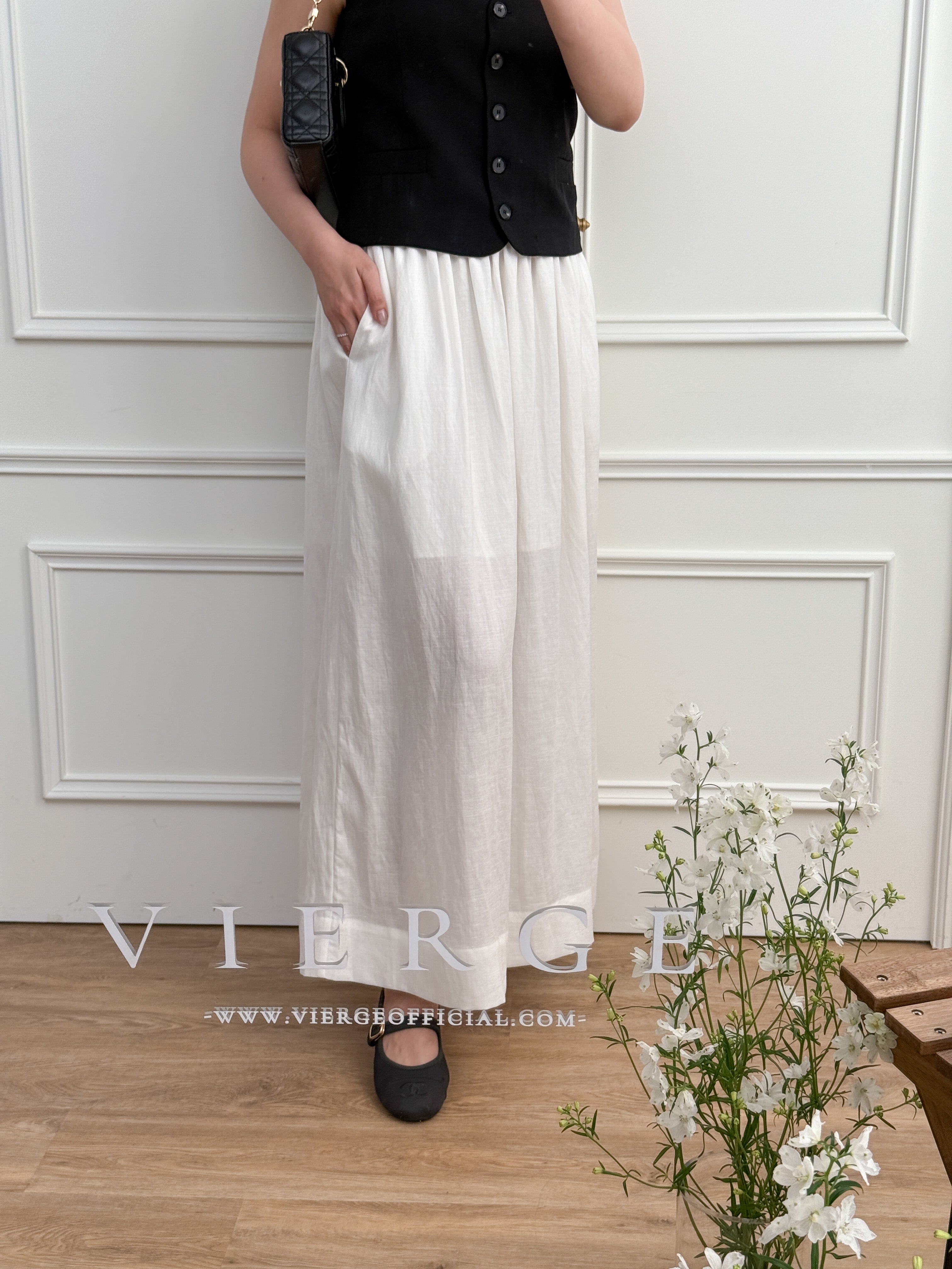 The skirt is available in two classic colors. Its flowing design and midi length make it a versatile piece, suitable for both casual and formal occasions.