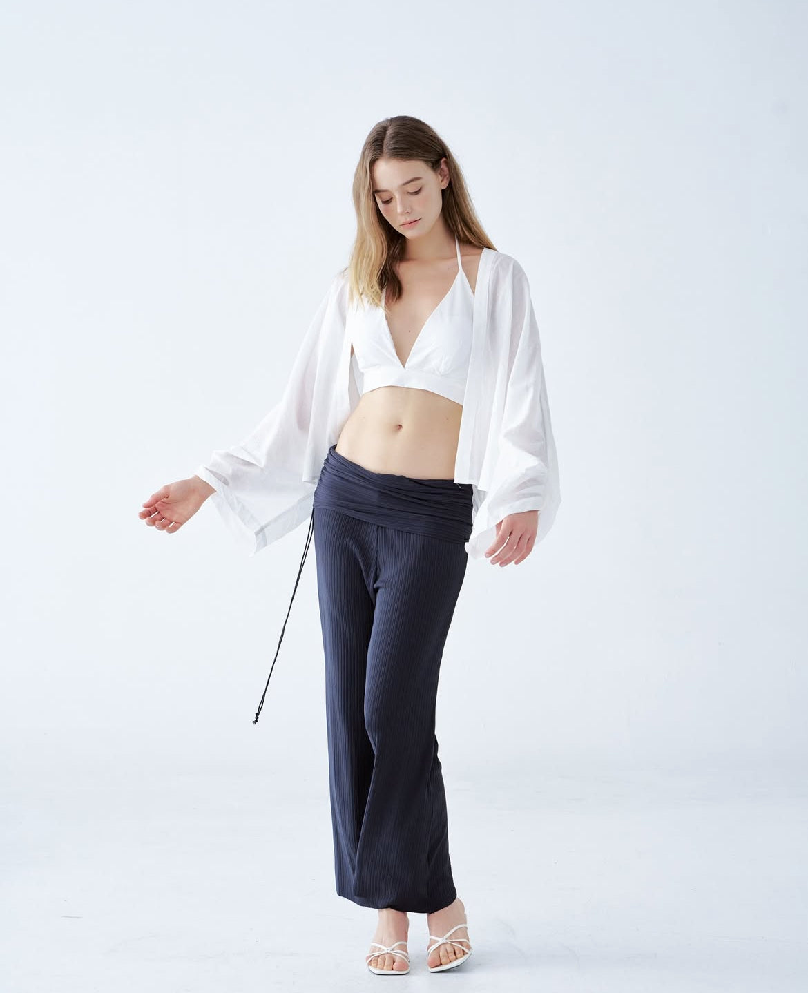 This lightweight shirt features an open front and billowy sleeves, creating a relaxed and airy silhouette. Its crisp white color and versatile design make it ideal for layering over casual outfits or swimwear for a laid-back, stylish look.