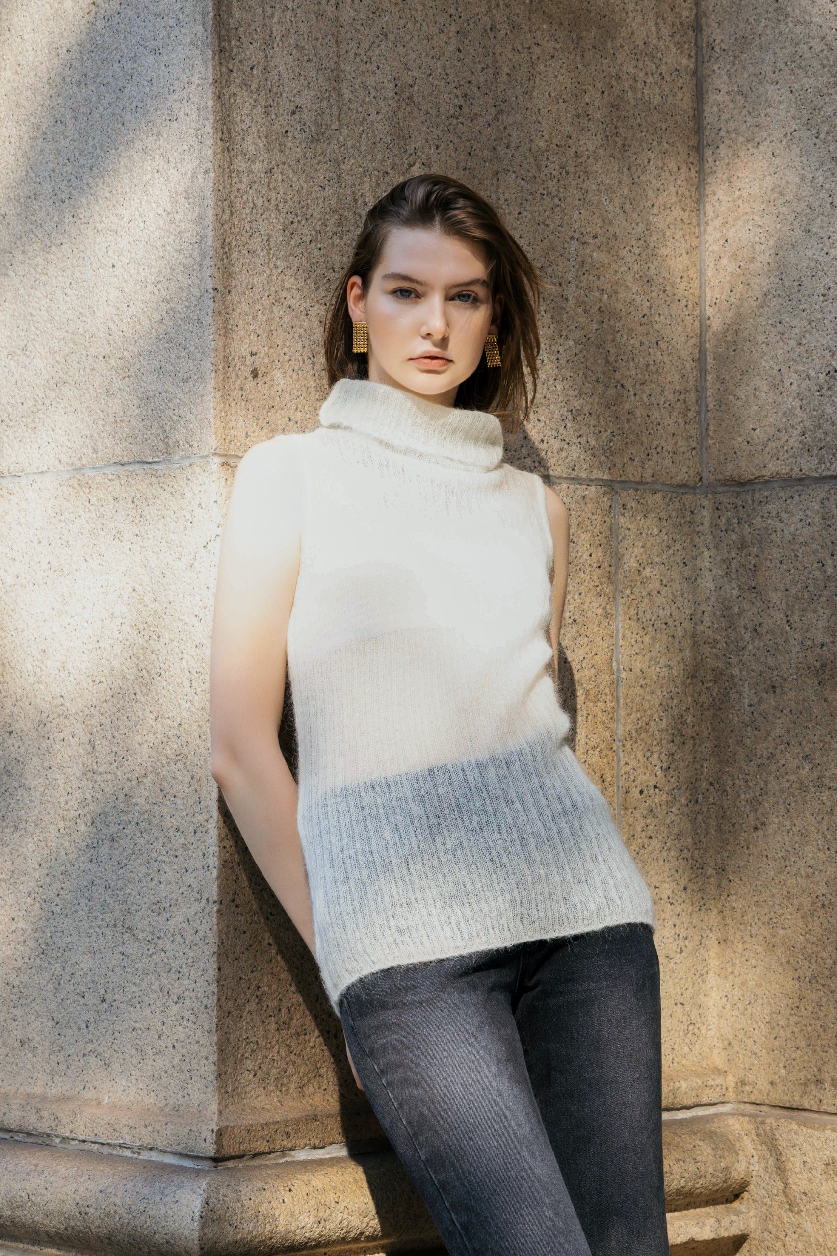 Designed with a soft, draped turtleneck and a minimalist silhouette. The airy knit made from virgin wool is luxuriously soft and lightweight , making it a versatile piece that transitions seamlessly from crisp autumn days to layering for chilly festive season.