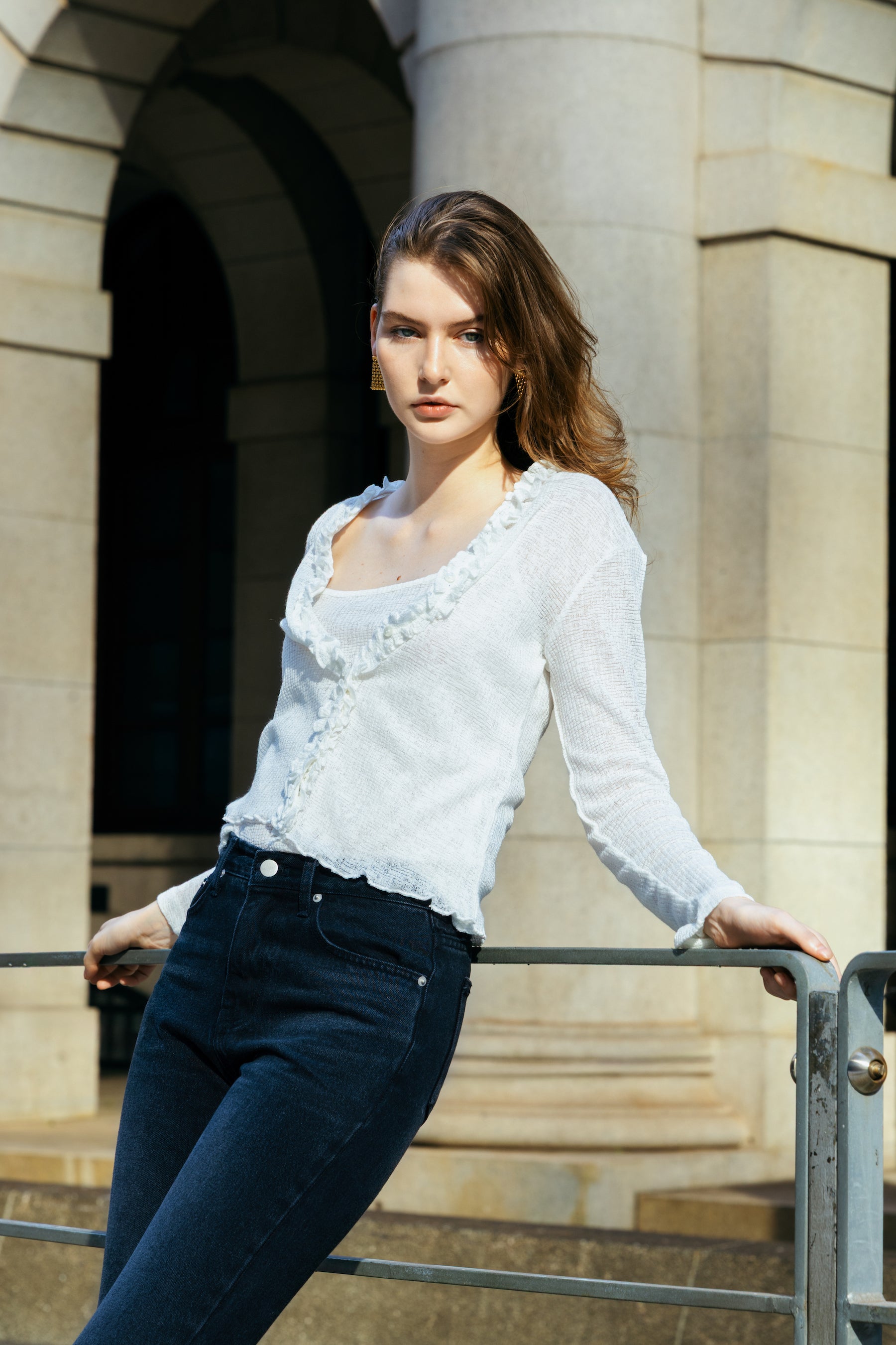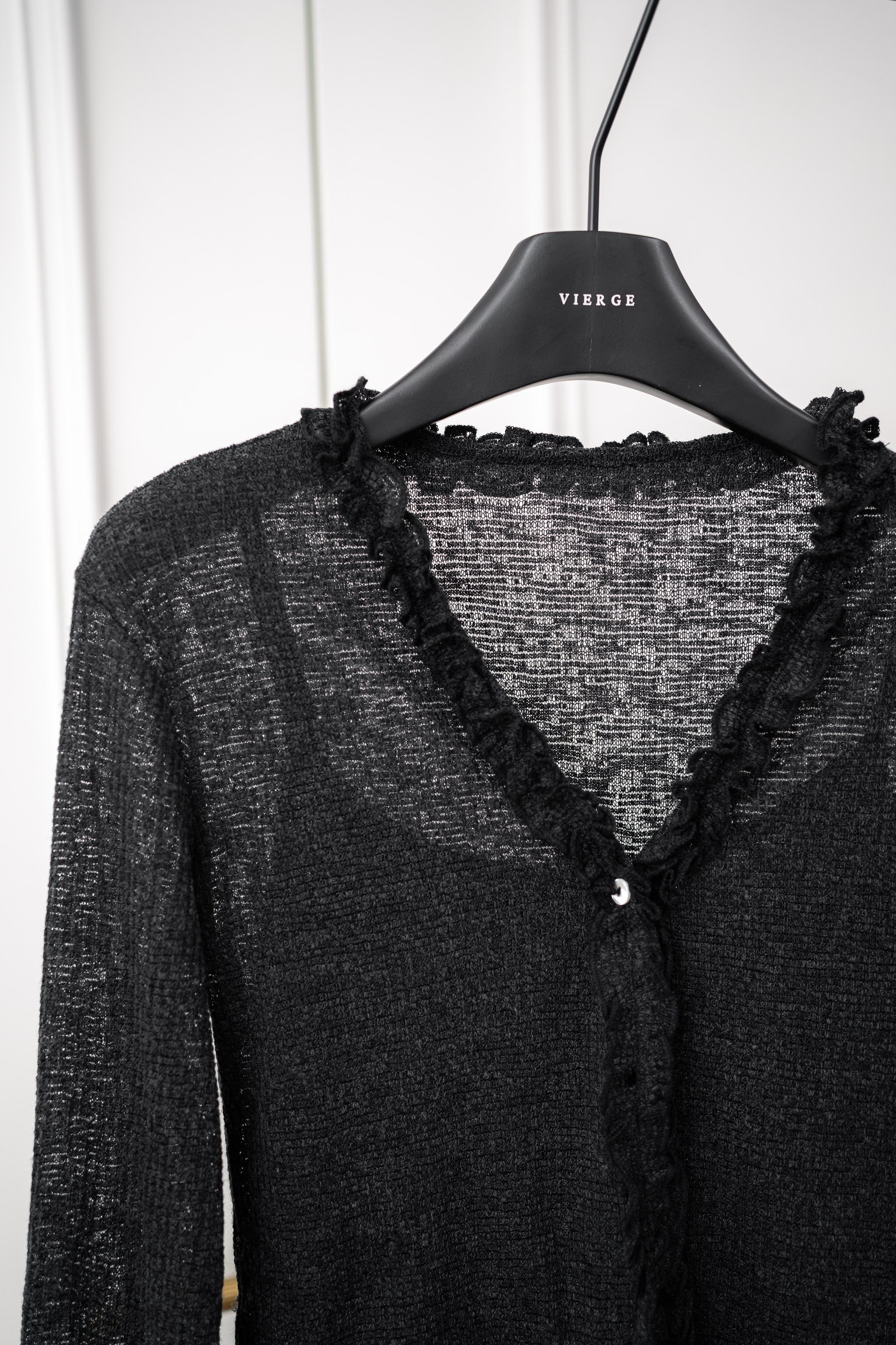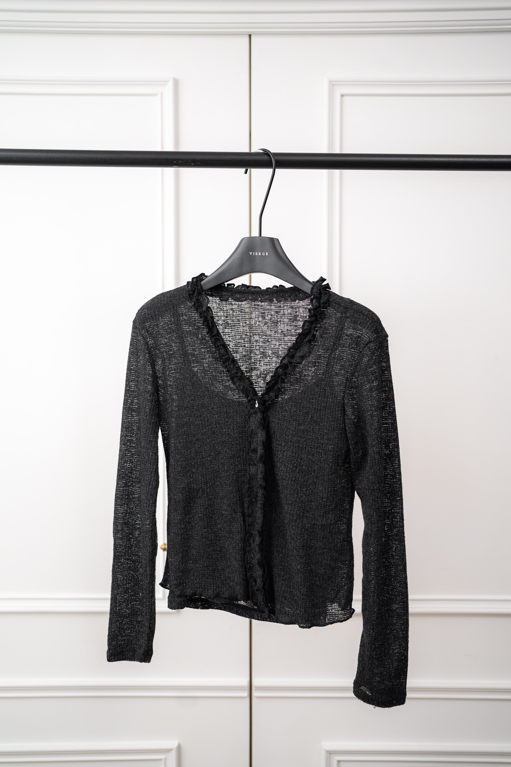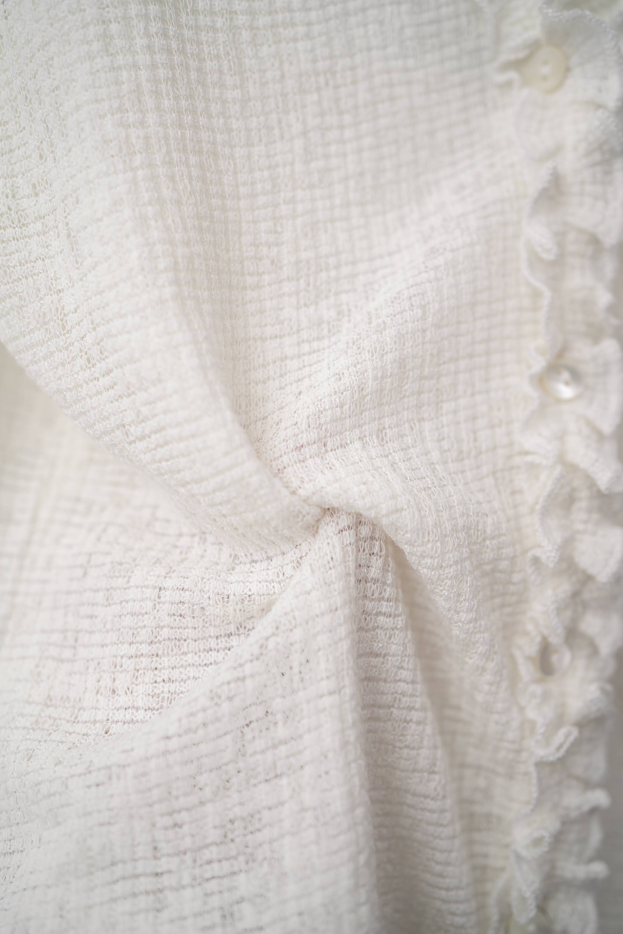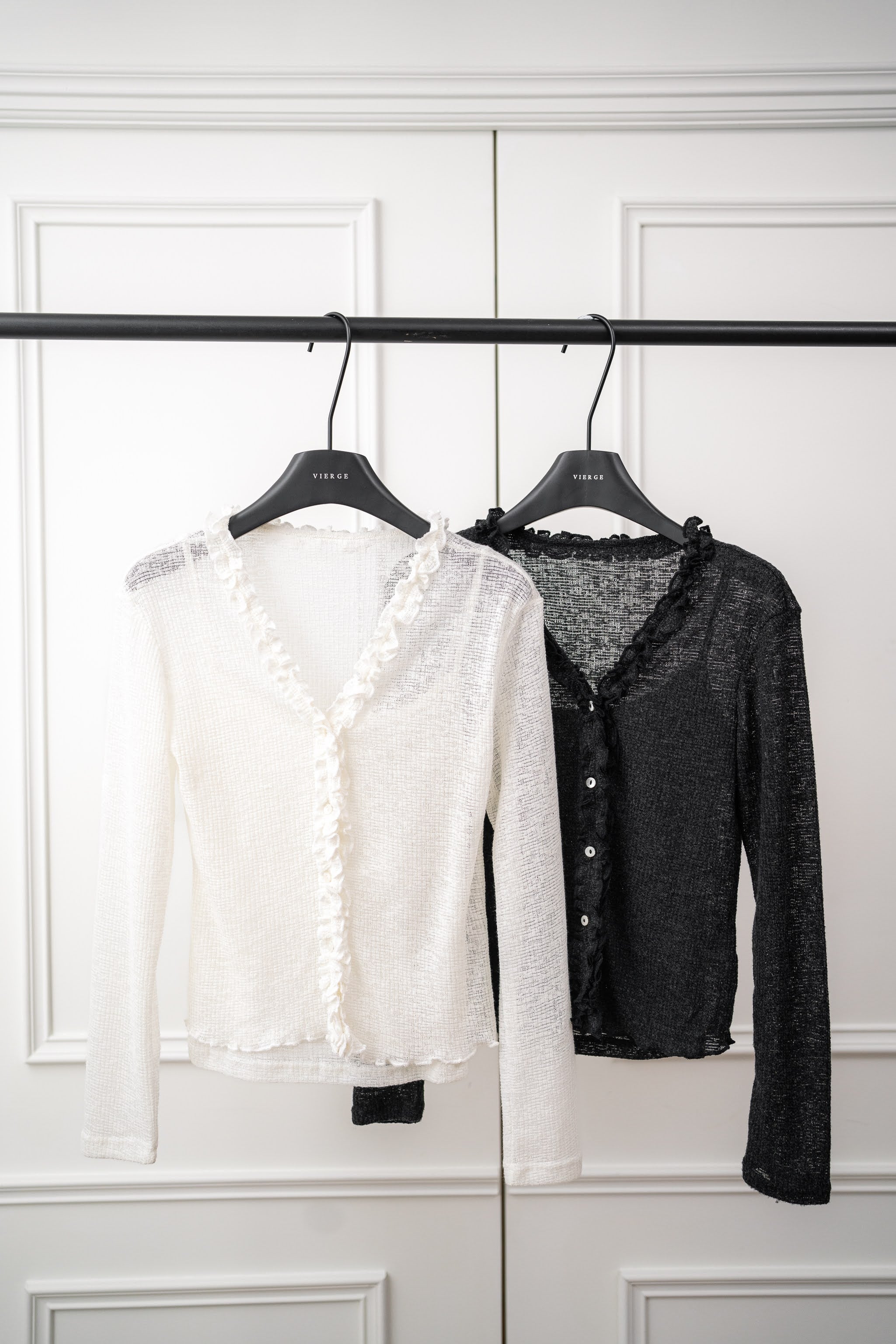 Cami and cardigan set adorned with refined ruffle detailing along the neckline. Crafted from lightweight and breathable fabric. Style with jeans on a put-together weekend look or dress up with a slip skirt.